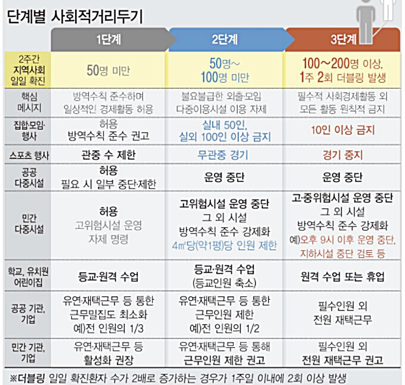* PC방, 격렬한 실내집단운동 등 고위험시설(전국) + 학원·독서실·실내체육시설 등(수도권)